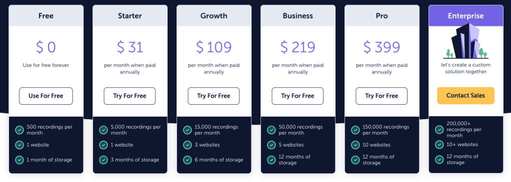 - 優勢:收費方案價格相對便宜友好,除了網頁熱點分析外,同時有網站使用者錄影回放、問卷功能、對話視窗服務、表單分析,CP值高!