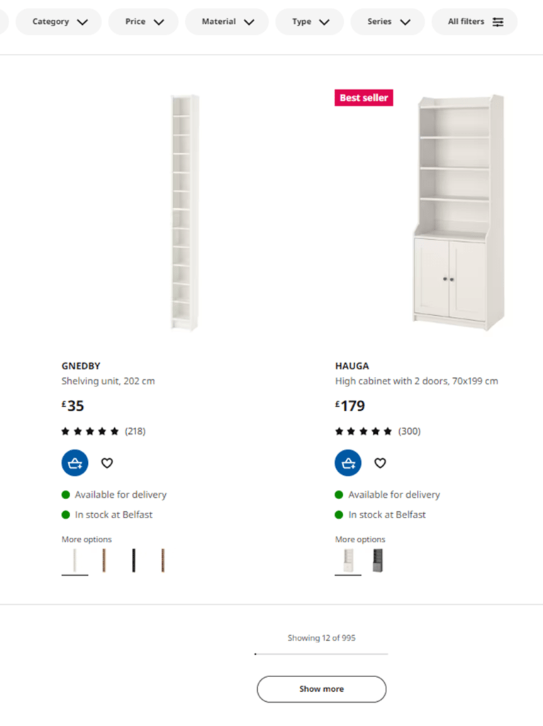 不斷延伸型的的網頁瀏覽界面也同時能夠幫助新到站的使用者,輕鬆探索你的產品而沒有負擔。不過反之,對於重複到訪的使用者,不斷延伸型的的網頁瀏覽界面就可能影響到他們快速找到心儀產品的速度,在UX/UI上也需要考慮如何透過搜尋方式或選單簡化尋找的步驟,才有機會打造出兼具引人入勝和實用性的界面。