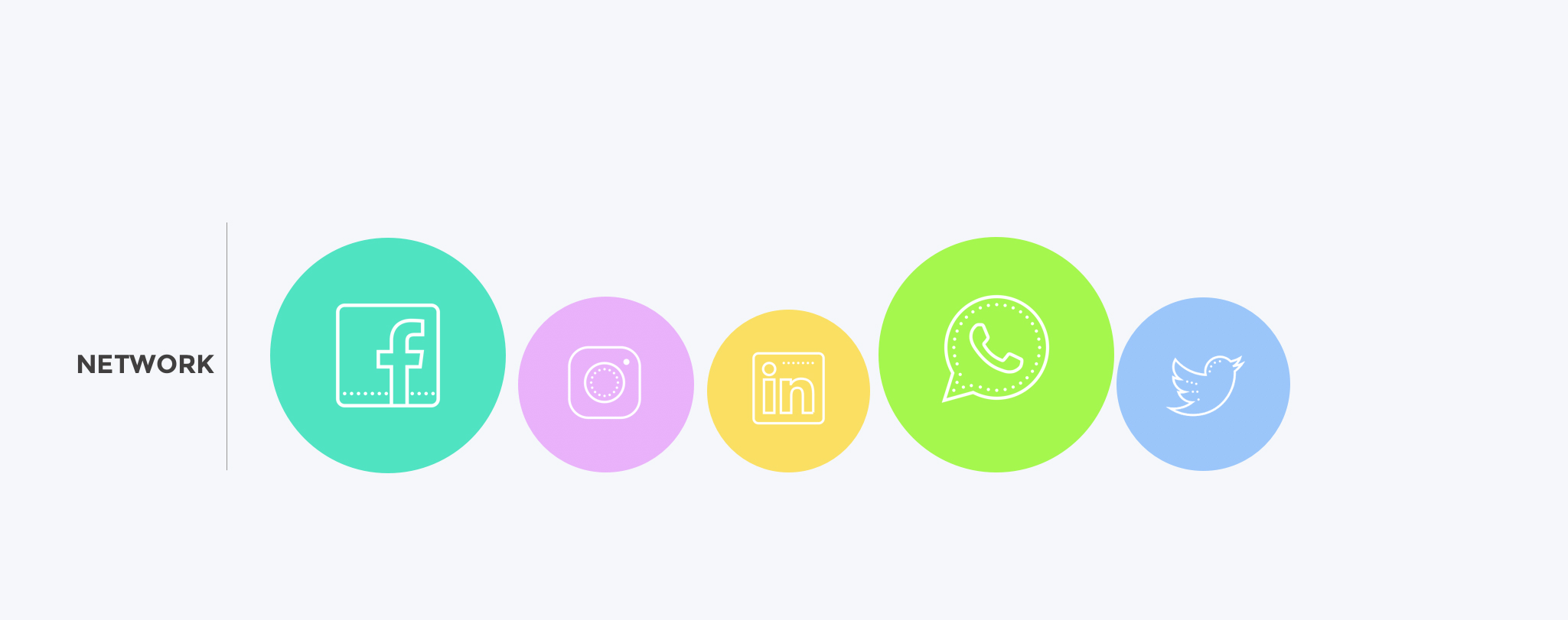 - 不符合標準案例 (左圖):高彩色圓圈上的白色圖示對於區分他們代表的社交網站至關重要。然而,在這個版本中,在高彩色圓圈上使用白色線條使得很難清楚地辨別訊息。