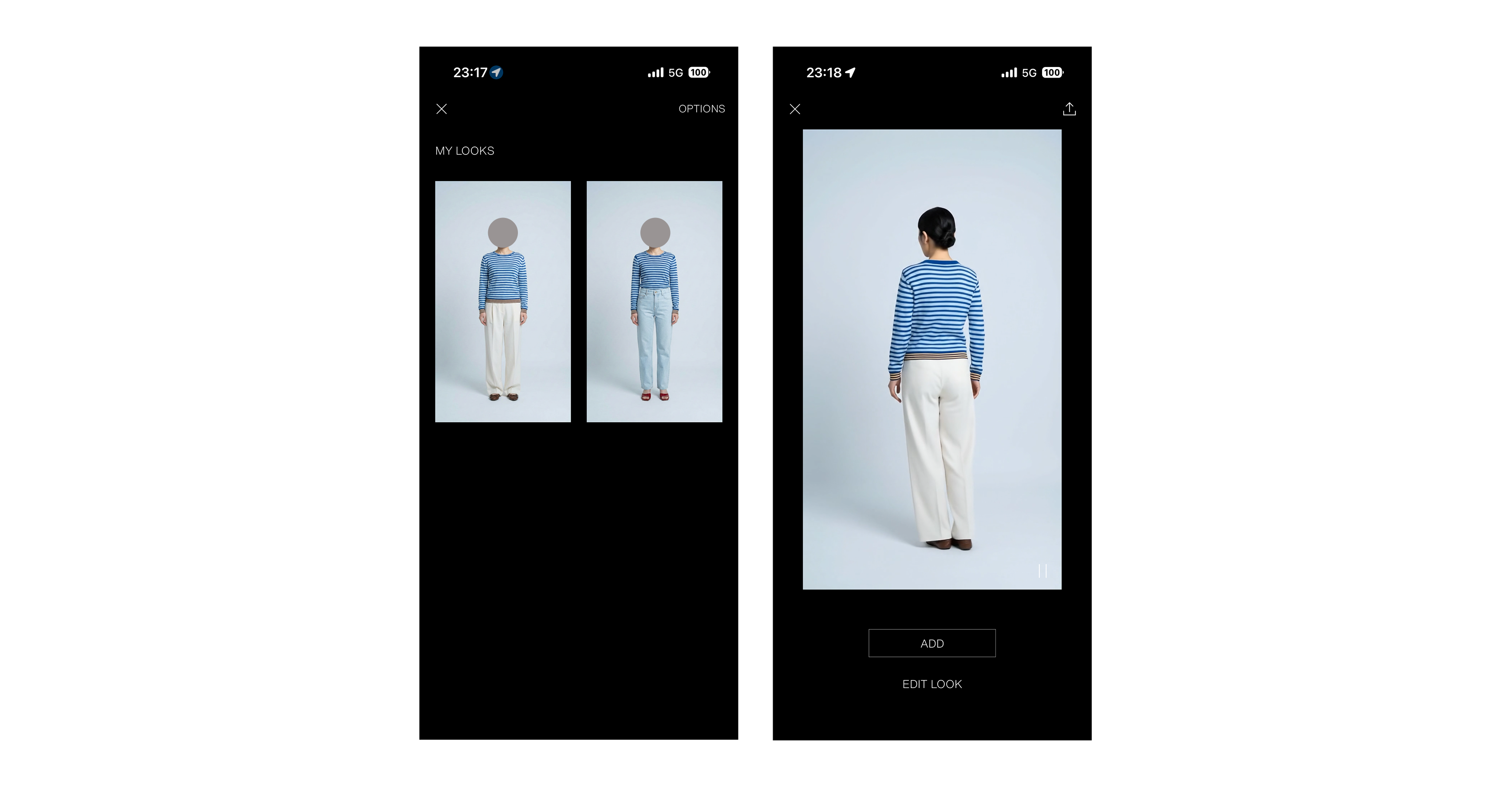 每套試穿結果會自動儲存在「MY LOOKS」頁籤,成為個人的穿搭靈感參考庫,讓這個功能的使用價值延伸到購物行為之外,也增加了使用者回訪應用程式的動機